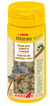 sera виформо Nature – корм для сомов, не содержащий красителей и консервантов, в форме таблеток, произведенных путем бережной обработки сырья, для всех сомов и других, ориентированных на придонное кормление рыб, которые ищут себе пищу на грунте.