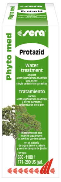 Растительное кондиционер воды sera Phyto med Протацид содержит в качестве действующего вещества высокоэффективный хинин (в виде гидрохлорида) полученный из коры хинного дерева. Средство может использоваться для борьбы с болезнью «белых пятен» у пресноводных и морских рыб, а также для борьбы с другими одноклеточными кожными паразитами, такими как Ichthyobodo sp., Chilodonella sp. или Piscinoodinium pillulare в пресной воде.