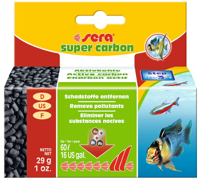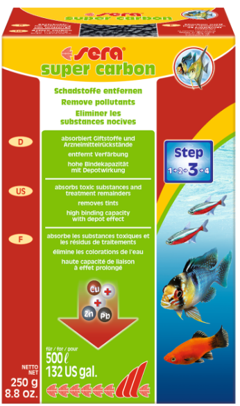 Специальный активированный уголь с высокой абсорбирующей активностью sera супер карбон быстро, эффективно, без побочных эффектов и не влияя на величину pH удаляет из воды остатки лекарственных средств. Использованный активированный уголь с абсорбированными, опасными для окружающей среды, веществами может быть без проблем выброшен вместе с домашним мусором без ущерба для окружающей среды.