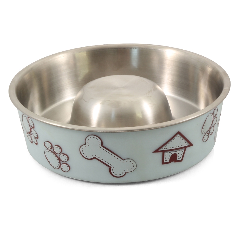 Стильная круглая миска из нержавеющей стали для собак. Она идеально подходит как для воды, так и для корма разной консистенции. Миска имеет специальную конструкцию для медленного поглощения еды, она комфортна для питомца и легко моется под струей проточной воды с использованием моющих бытовых средств. Прорезиненное основание обеспечивает максимальную устойчивость, препятствуя скольжению изделия во время использования, а оригинальный принт сделает такую миску украшением любого интерьера. Цвет изделия: серый.