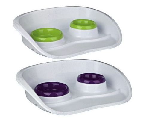 Набор "TRIXIE" для еды, пластиковый, лёгкий, 0.25л/диам.9см, 0.3л/диам.46х11х30 см -с ограждением, защищающим от разбрызгивания, -с резиновыми ножками. -цвет гранит/цвет мисок- различные варианты.