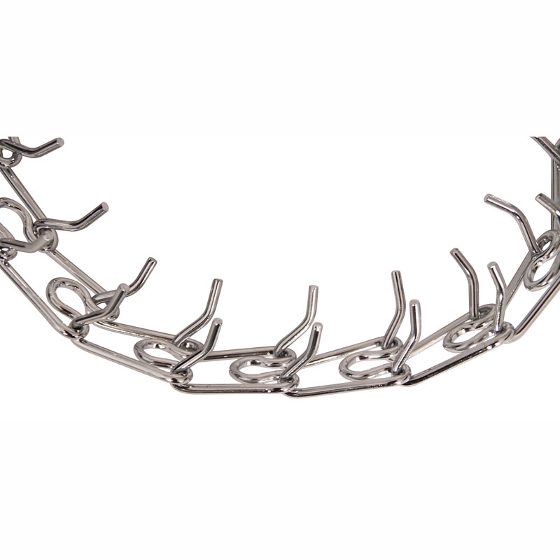 Строгий стальной ошейник-удавка с шипами - функциональный аксессуар для собак средних и крупных пород и эффективная мера воздействия при длительных прогулках и интенсивной дрессировке. Расположенные внутри ошейника шипы позволяют координировать все действия собаки и держать ее под строгим контролем. Диаметр проволоки - 3мм, длина ошейника - 550мм. Цвет: хром.