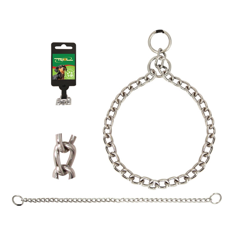 Ошейник-удавка однорядный из металлических звеньев создан для безопасного выгула активных и сильных собак. Звенья имеют гладкую поверхность и плотно скреплены между собой, благодаря чему шерсть собаки не травмируется даже при сильном натяжении. Ошейник имеет специальные кольца для удобной фиксации поводка. Аксессуар для домашних животных. Срок годности не ограничен. Товар обязательной сертификации не подлежит.