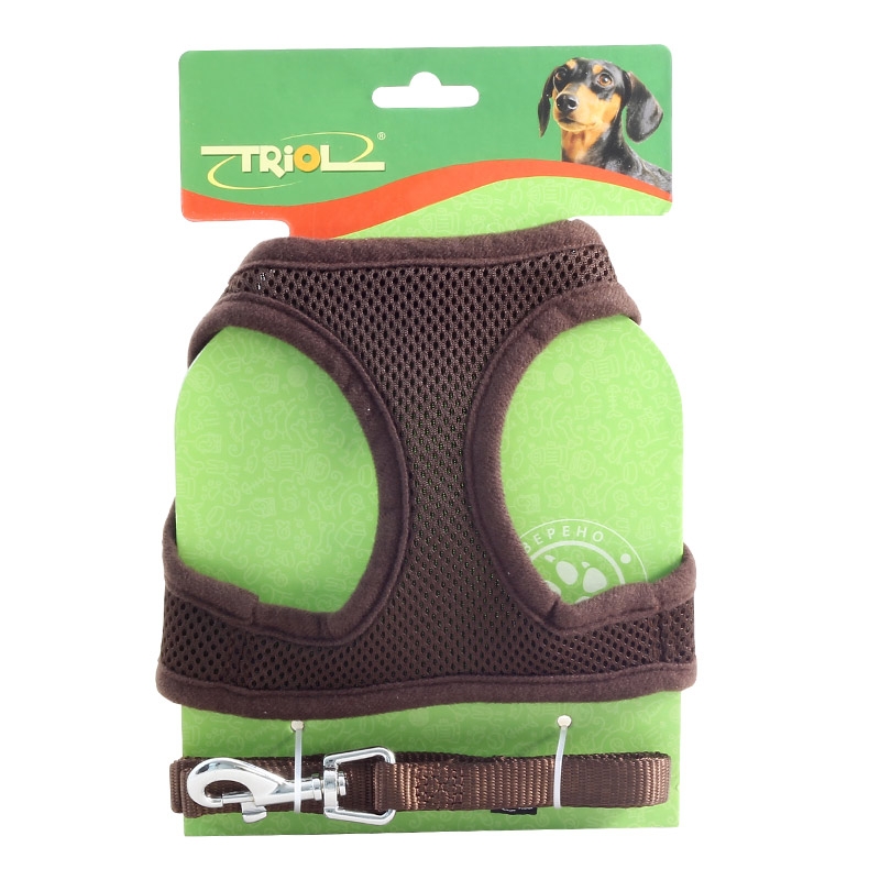 Мягкая шлейка-жилетка с поводком изготовлена из качественного нейлона. Шлейка очень удобная, имеет широкую сетчатую поверхность, которая бережно прилегает к телу и хорошо пропускает воздух. Шлейка крепится при помощи широкой липучки и пластиковой застежки на спине питомца.