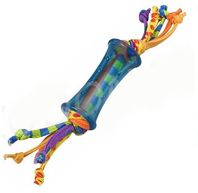Игрушка изготовлена из синтетической резины и хлопчатобумажных лент. Резина позволяет бережно удалять налет с зубов собаки прямо во время игры, а ленточки поддерживают игровой интерес у вашего питомца. .