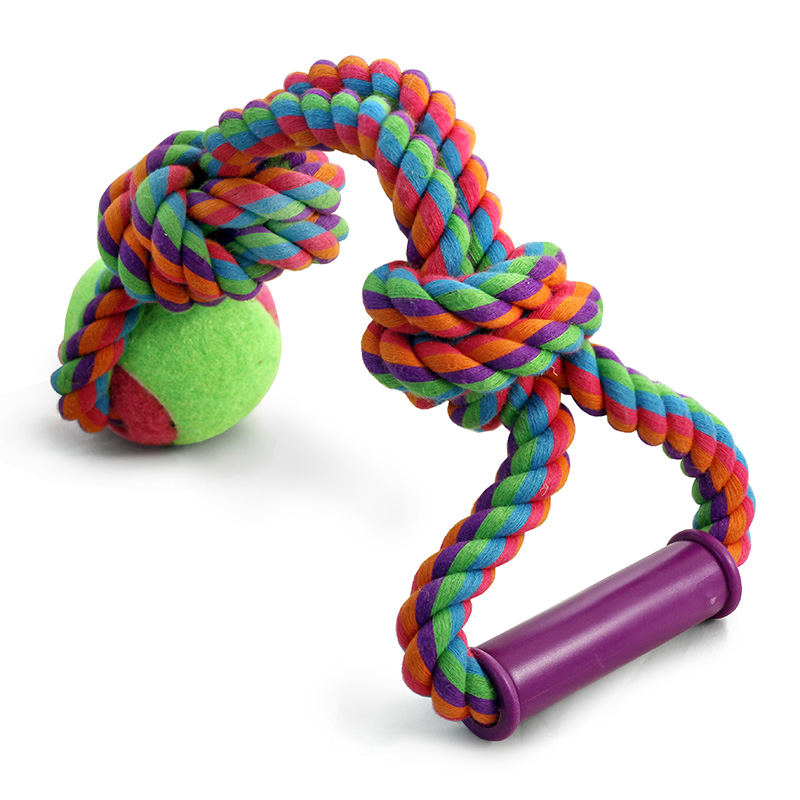 - Описание Суперпрочная игрушка для апортировки, отлично подойдёт для активной игры в парке или на даче. Собаки обожают играть с веревочными игрушками, так как их можно грызть, трепать и носить в зубах. Такие игрушки отлично массируют десны и очищают зубной налет во время игры. Веревки сплетены из нетей натурального хлопка, поэтому безопасны для здоровья Вашего питомца. Цвета в ассортименте. Размер d65*380*140мм. Вес 250-260г.