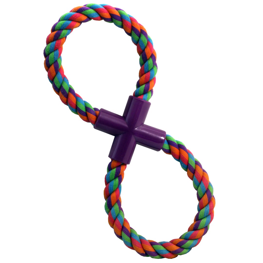 - Описание Веревка-восьмерка цветная. Собаки обожают играть с веревочными игрушками, так как их можно грызть, трепать и носить в зубах. Такие игрушки отлично массируют десны и очищают зубной налет во время игры. Веревки сплетены из нетей натурального хлопка, поэтому безопасны для здоровья Вашего питомца. Цвета в ассортименте. Размер в ассортименте.