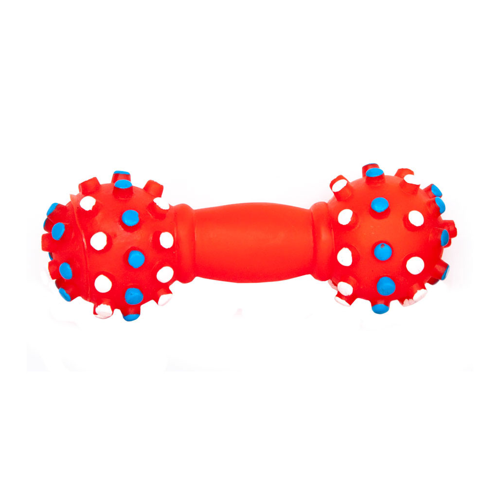 Виниловая игрушка "Гантелька шипованная с пищалкой". Виниловые игрушки помогают собаке снять стресс, если хозяина нет дома, массируют десны, а также способствуют формированию правильного поведения у собаки.