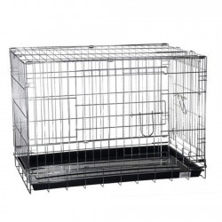Клетка с фальшдном для собак малых пород, щенков. Выстовочная, для дома, для перевозки собак. Металл, одна дверь, открытие спереди и сбоку. Выдвижной пластиковый поддон. Прочные защелки. Компактно складывается. Размеры: 61x44х50 cм.