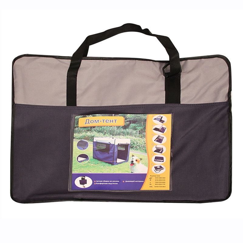 Удобный складной матерчатый тент - универсальное решение для владельцев собак. Его можно использовать как на улице, так и в помещении в качестве основного места для собаки. Незаменимым атрибутом дом-тент является для владельцев собак на выставках и при перевозке во время длительных путешествий. Удобный, легкий, устойчивый, вместительный и функциональный, он позволяет обеспечить животному максимально комфортные условия содержания. Тент имеет прорезиненные сетчатые окна со шторками и удобный матрас, утепленный искусственным мехом с одной стороны (зимний вариант) и с тонким покрытием с другой (летний вариант). Тентовое покрытие изготовлено из прочного синтетического экоматериала, а сама конструкция легко складывается в удобную сумку, не занимая много места. Цвет: серо-синий. Размер: 610х460х535мм.