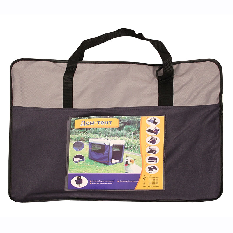 Удобный складной матерчатый тент - универсальное решение для владельцев собак. Его можно использовать как на улице, так и в помещении в качестве основного места для собаки. Незаменимым атрибутом дом-тент является для владельцев собак на выставках и при перевозке во время длительных путешествий. Удобный, легкий, устойчивый, вместительный и функциональный, он позволяет обеспечить животному максимально комфортные условия содержания. Тент имеет прорезиненные сетчатые окна со шторками и удобный матрас, утепленный искусственным мехом с одной стороны (зимний вариант) и с тонким покрытием с другой (летний вариант). Тентовое покрытие изготовлено из прочного синтетического экоматериала, а сама конструкция легко складывается в удобную сумку, не занимая много места. Цвет: серо-синий. Размер: 1070х735х863мм.