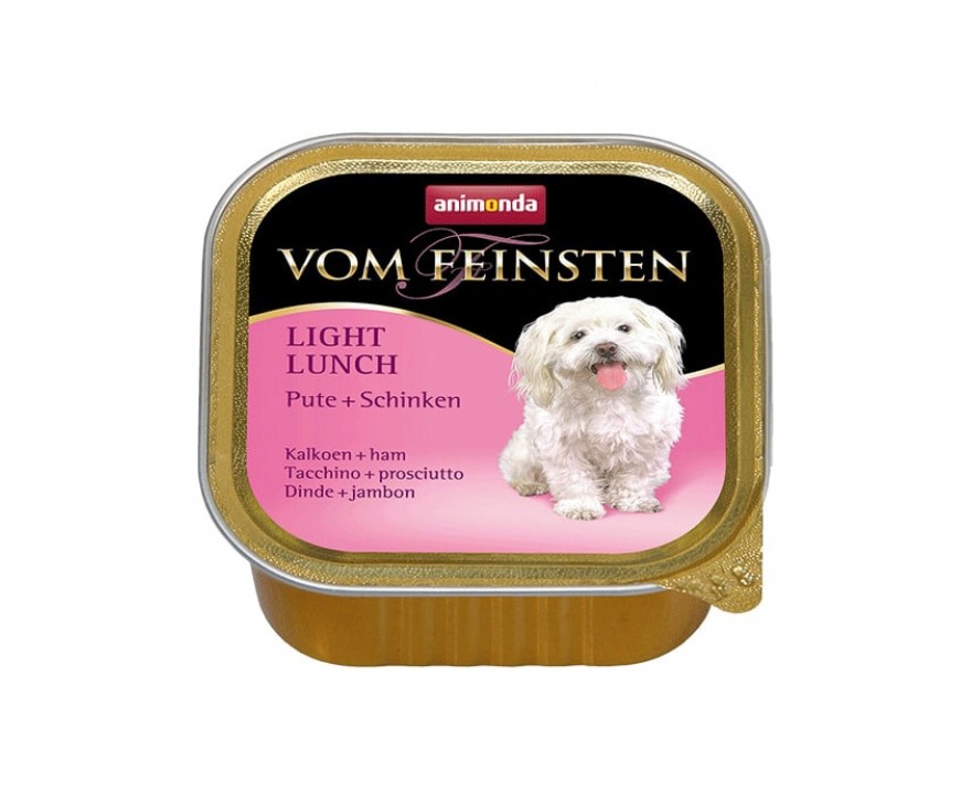Vom Feinsten Light Lunch (Индейка, ветчина), 150 гр - это сбалансированный корм из диетического мяса индейки. Прекрасно подходит для чувствительных собак.