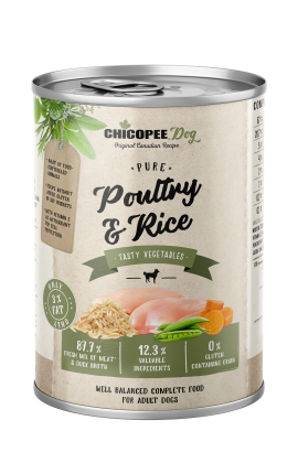 Chicopee заботится о наличии свежих овощей в составе для хорошего самочувствия и жизненной силы вашего питомца.Состав: 67,0% мясо и субпродукты (30% утка, 25% цыпленок), 20,7% утиный бульон, 5,0% рис, 4,0% морковь, 2,0% горох, 1,0% минералы, 0,2% рапсовое масло, 0,1% инулин.Аналитические составляющие