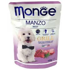 Monge Grill Pouch Beef - это полноценный консервированный корм для собак с кусочками говядины.