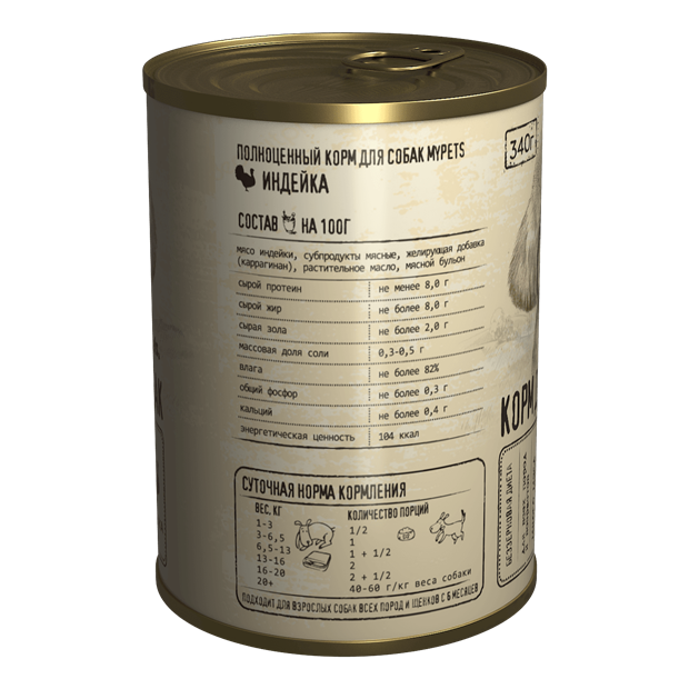 Мясо индейки, субпродукты мясные, желирующая добавка (каррагинан), растительное масло, мясной бульон