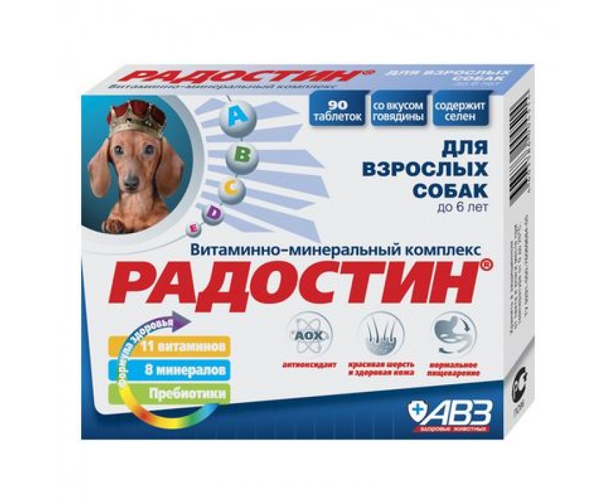 Добавка РАДОСТИН С витаминно-минеральный комплекс для собак до 6 лет, 90таблеток.