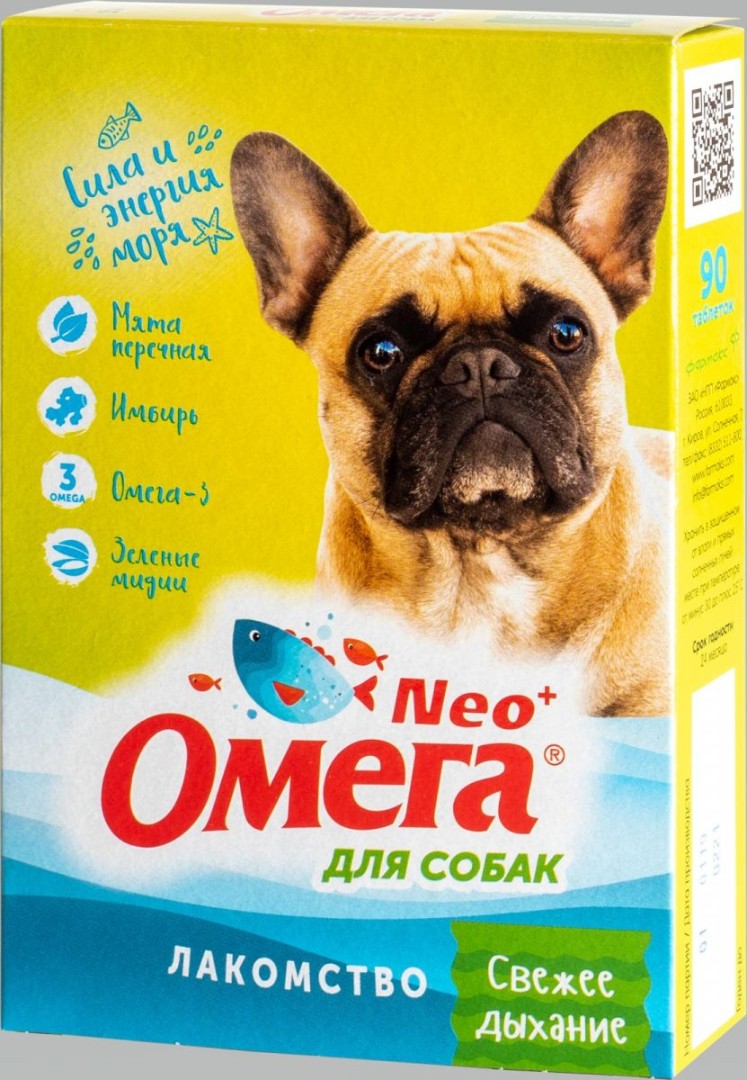 Омега Neo+ Свежее дыхание лакомство мультивитаминное с мятой и имбирем для собак - функциональный корм для собак.