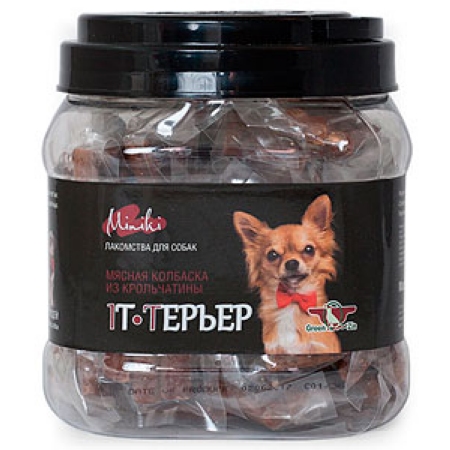 Лакомство произведено по типу колбас при полном отсутствии специй и максимальным количеством натуральных ингредиентов: мясом кролика, перемолотыми субпродуктами (хрящами и сухожилиями), которые набиты в баранью кишку для придания деликатесу изысканного аромата.