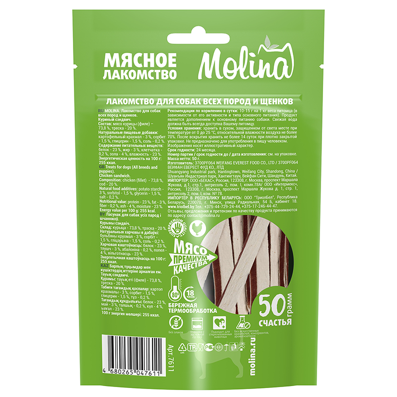 *Можно давать стерилизованным животныммясо курицы (филе) – 73,8 %, треска - 20 %.