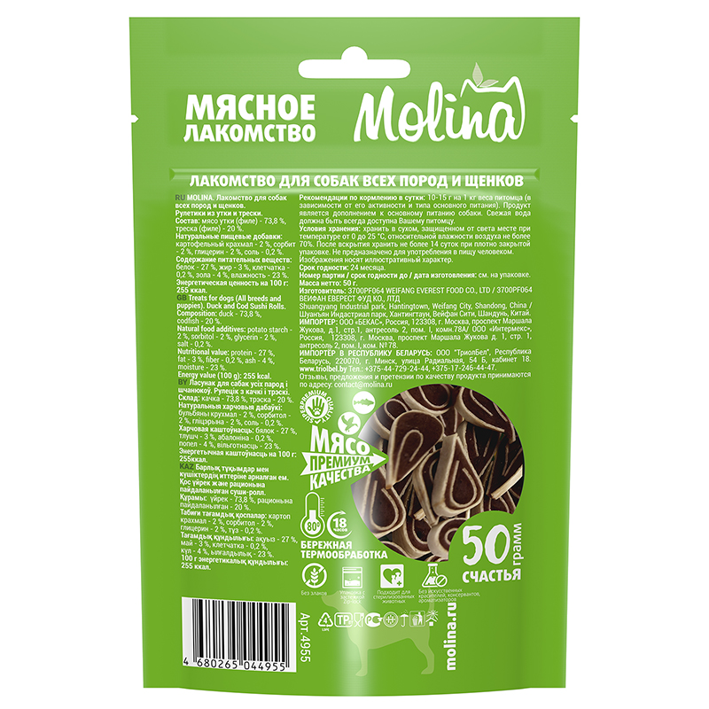*Не менее 70% филе утки, и не менее 20% филе трески