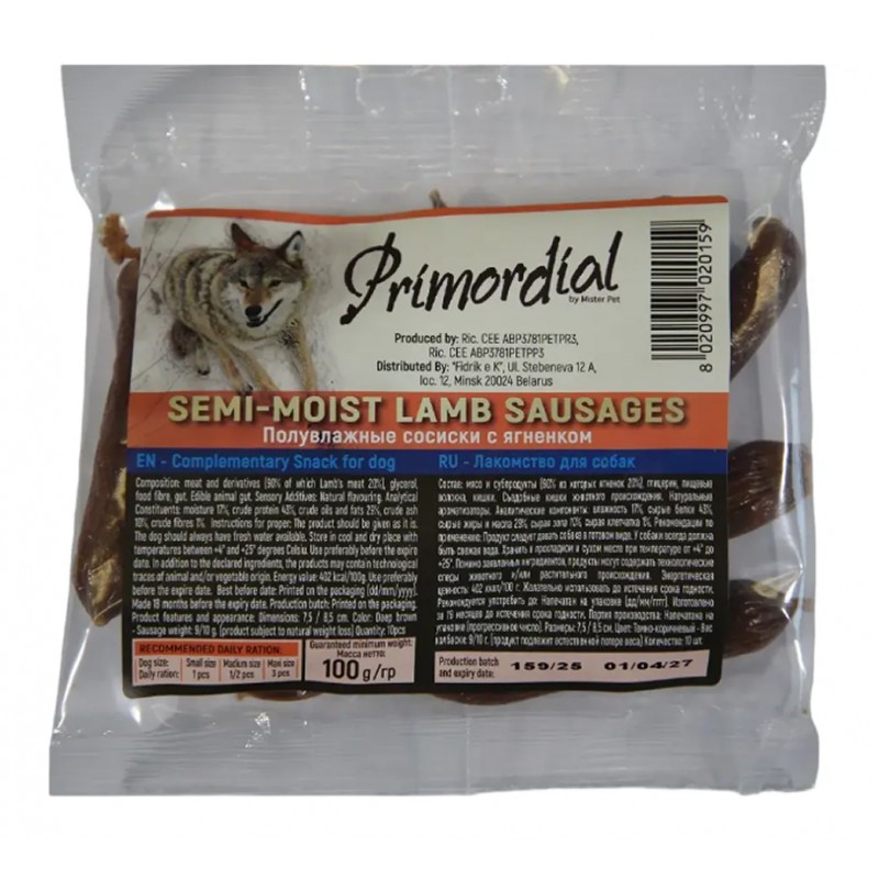 Лакомство для собак, полувлажные сосиски с ягнёнком