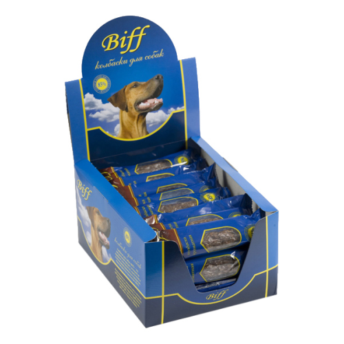 - с легким говяжьим. Легкие очень вкусны, малокалорийны и замечательно усваиваются организмом.Колбаски для собак Бифф Мини. Изготовлены из говяжьего мяса и мясных субпродуктов по колбасной технологии "Biff".Короб содержит 30колбасок длиной 12 см и диаметром 2 см в индивидуальной упаковке, каждая весом 20 г. Натуральный продукт, который не содержит красителей, консервантов и ГМО.Состав:мясо и мясные субпродукты (более 85%), кукуруза, минеральные вещества. Рекомендации к применению: Используются для укрепления десен, очищают зубы от вредного налета и предотвращают образование зубного камня. Рекомендуемая норма потребления составляет 10% от суточного рациона для собак старше 12 недель. Масса нетто: 600 г Упаковка:картонный короб 180*150*100 мм Срок годности: 12 месяцев со дня изготовления