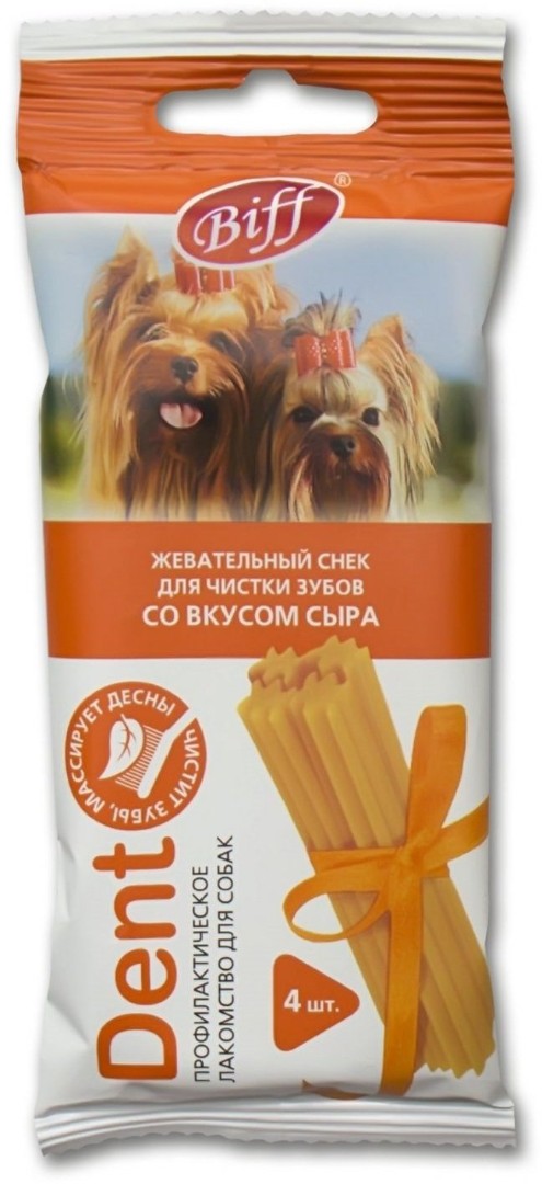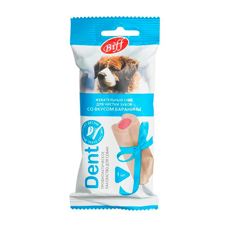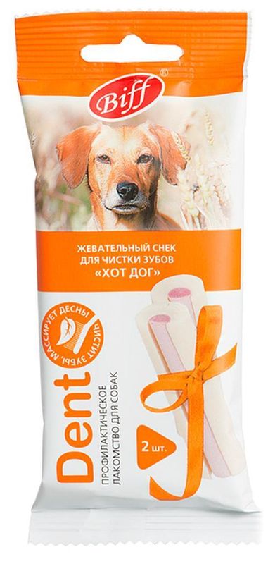 - Хот-дог, для средних собакBiff DENT жевательные снеки - это профилактическое лакомство для собак специально разработанной формы и текстуры, в котором учтены все особенности пород собак. Рекомендованы для снятия мягкого зубного налета.