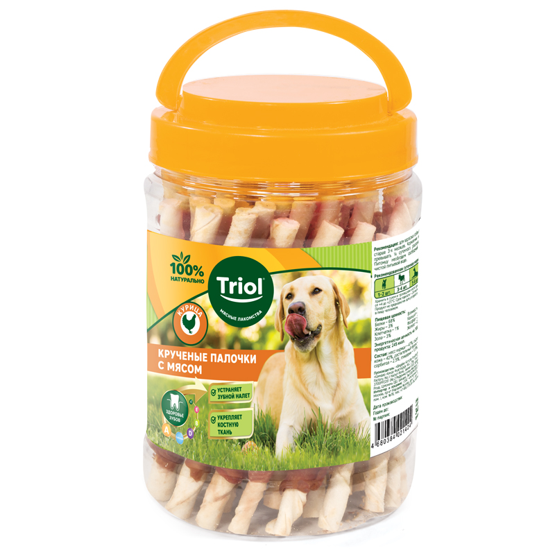 Крученые палочки с курицей – это полезное угощение для профилактики зубного камня, здоровья структуры костных тканей и обеспечения функциональности кровообращения, обогащенное кальцием, фосфором и железом.