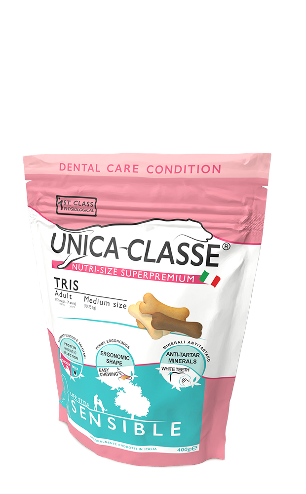 Unica Classe Adult Tris Sensible - это питательное супер-премиум печенье для собак со вкусом курицы для чувствительного пищеварения. Содержит полезные жирные кислоты Омега-3, минералы для профилактики зубного камня и для белых зубов, эргономичная форма.