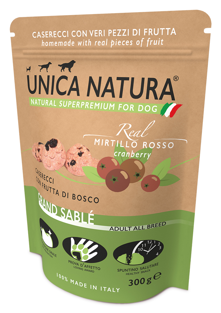 Unica Natura Real Grand Sable - это домашнее печенье с дикими ягодами (клюква). Обеспечивет: профилактику ротовой полости. Можно использовать как награда питомцу, здоровый перекус. Без добавления искусственных консервантов, антиоксидантов и красителей. Полностью натуральное.