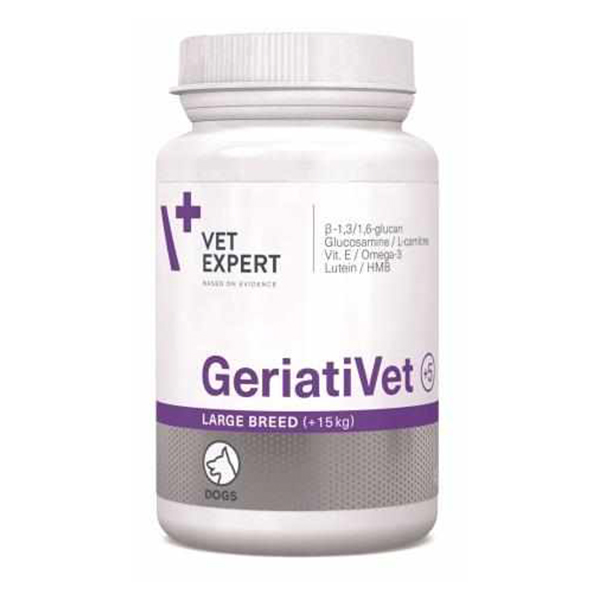 GeriatiVet Large Breed: глюкозамин - 75 мг, β-1,3/1,6-глюкан - 150 мг, L-карнитин - 150 мг, лютеин- 20 мг, гидроксиметилбутират