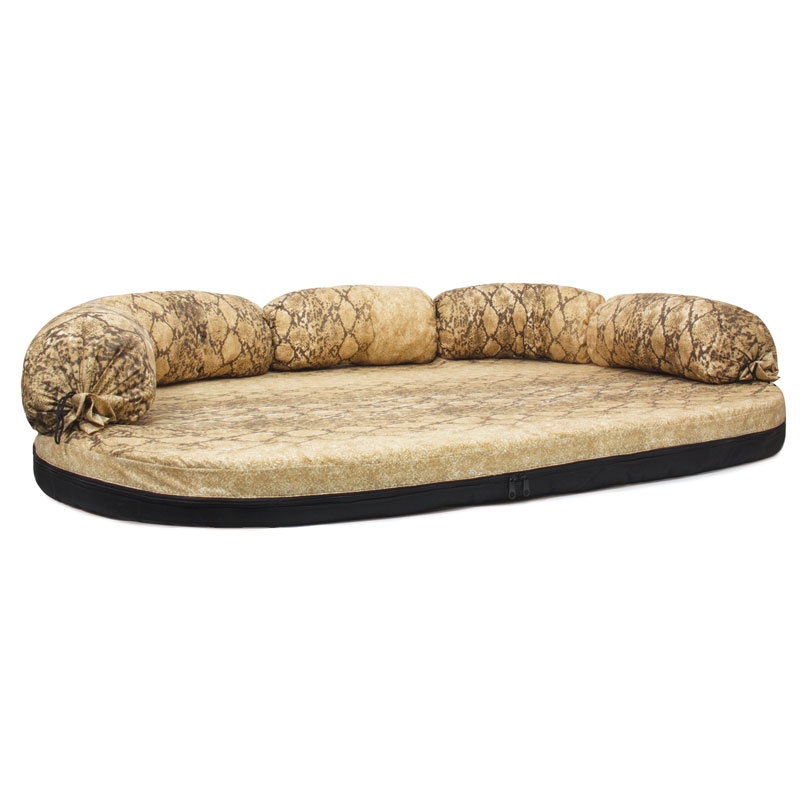 Мягкий поролоновый диван высотой 8 см по переднему краю и удобной спинкой (23 см). Съемный чехол на молнии удобно снимается и легко стирается, а мягкая боковая подушка фиксируется на шнурках. Размер изделия: 1340*1000*80мм. Цвета в ассортименте.
