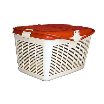 Пластиковая переноска для кошек и небольших собак. Открывается сверху, с вентиляционными отверстиями. Две ручки.