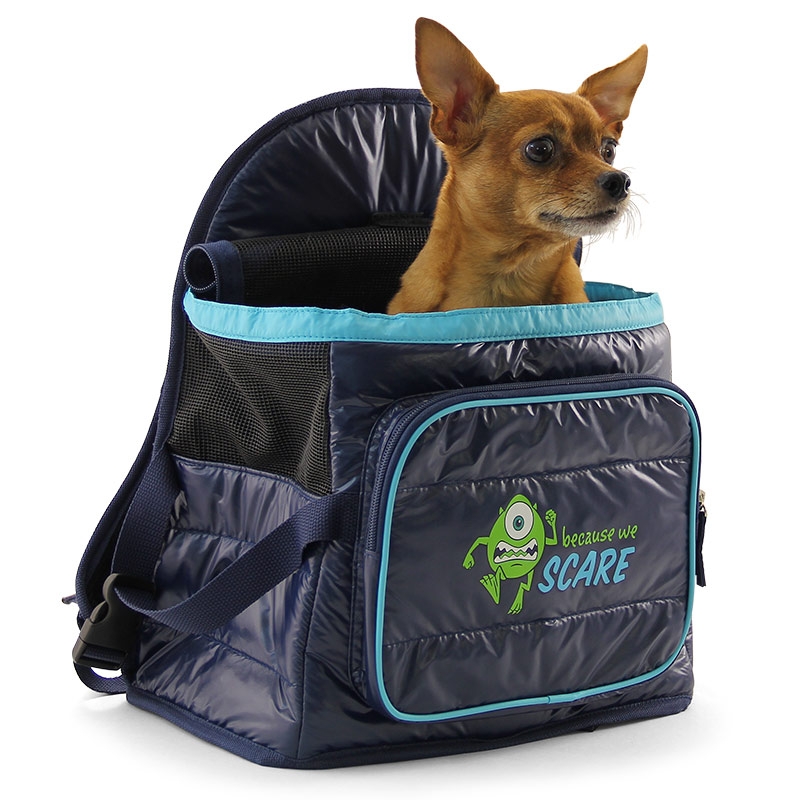 Компактный рюкзак-переноска с дизайнерским принтом прекрасно подойдет для кошек и собак мелких пород. Выполнен из полиэстера с добавлением синтепона для придания дополнительной мягкости и комфорта. Открывается на верху. Имеется короткий поводок для предотвращения выпрыгивания животного. Открывающаяся верхняя часть и боковая стенка снабжены вентиляционными отверстиями в виде сетки для хорошей циркуляции воздуха и