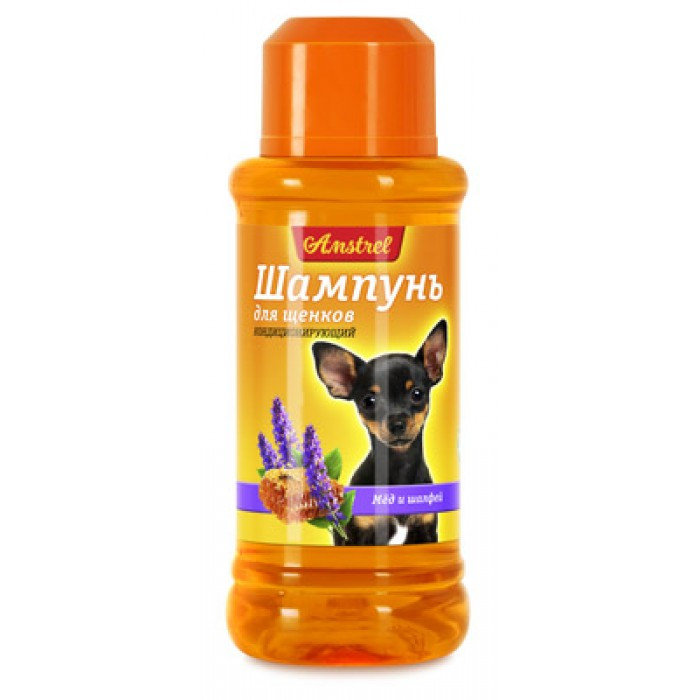 Шампунь "Amstrel" для щенков кондиционирующий с медом и шалфеем 320мл Шампунь для частого купания щенков, а также для собак с чувствительной кожей на основе «мягких» веществ. В состав шампуня входит комплекс из экстрактов мёда и шалфея. Экстракт мёда смягчает кожу животных. Экстракт шалфея обладает антибактериальными и антисептическими свойствами, а также обладает хорошими моющими свойствами, легко смывается. Не оказывает раздражающего действия на кожу. Побочных явлений и осложнений при применении шампуня не наблюдается. Противопоказаний не установлено.