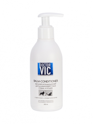 Бальзам - кондиционер применяют после применения шампуня. Бальзам – кондиционер наносят на чистую влажную шерсть животного, массируя, равномерно распределяют по телу, через 5-10 минут расчесывают, смывают теплой водой, шерсть высушивают феном или полотенцем. Для предотвращения попадания воды в уши, их рекомендуется закрыть ватными тампонами, смоченными вазелиновым маслом.Состав:
