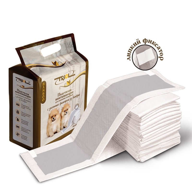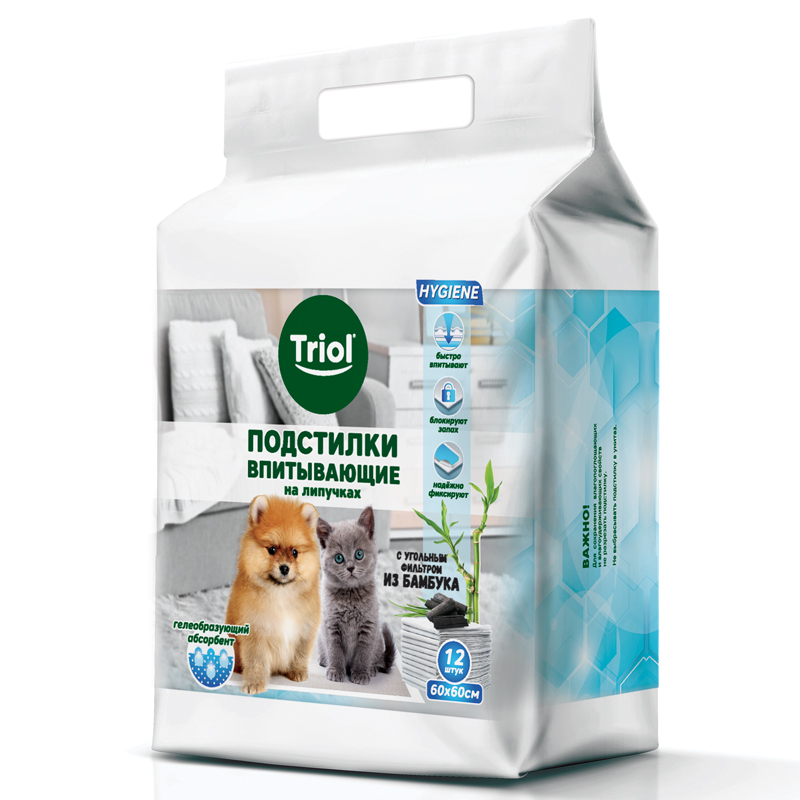 Подстилки впитывающие для домашних животных содержат угольный абсорбент, изготовленный из бамбука, который отлично впитывает жидкость, оставляя поверхность сухой, и надежно удерживает запах. Подстилки имеют липкие фиксаторы, которые прочно крепятся к поверхности, что исключает заминание углов и протекания жидкости. В упаковке 12 штук.