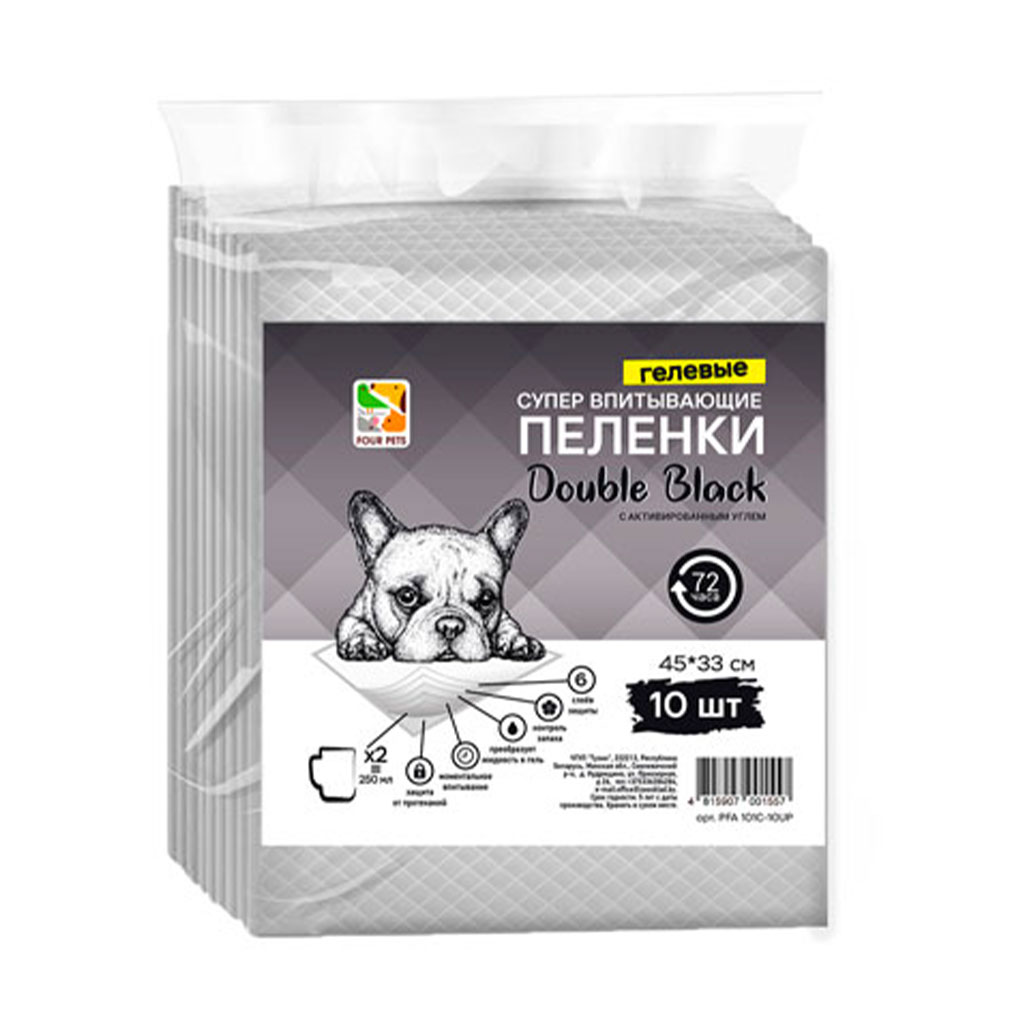 FOUR PETS Double Black Пеленки для собак одноразовые с АКТИВИРОВАННЫМ УГЛЕМ, 10 шт