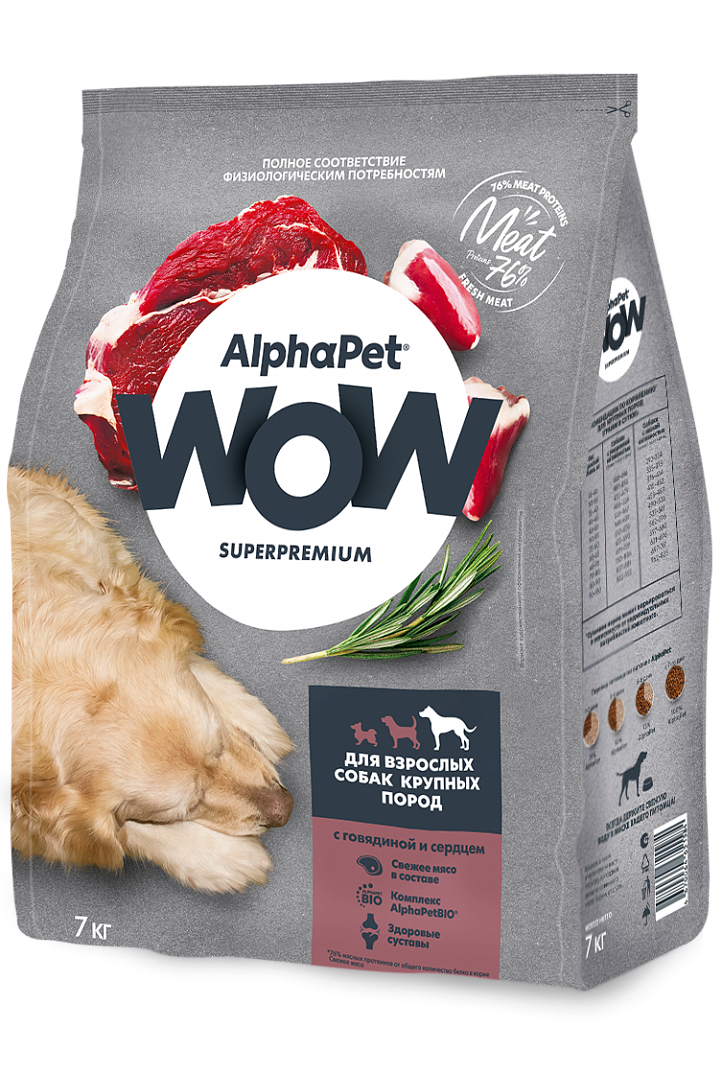 AlphaPet WOW Superpremium / Сухой полнорационный корм с говядиной и сердцем для взрослых собак средних пород