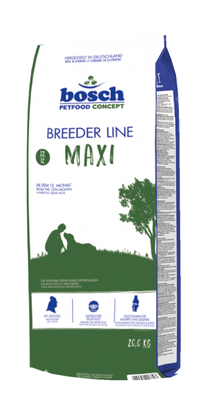 Бош Бридер Макси — сбалансированный высококачественный сухой корм для взрослых собак со средним уровнем активности, что является типичным случаем для взрослых собак крупных пород. Количество энергии в этом рационе сбалансировано таким образом, чтобы собака, получала все необходимые питательные вещества с дневной нормой корма и при этом оставалась в хорошей кондиции. Невысокая калорийность достигается за счет уменьшения процентного содержания жиров при стандартном содержании протеина. Такое сочетание обеспечивает взрослую собаку крупной породы со средними энергозатратами необходимыми питательными веществами, не создавая излишней нагрузки на печень.