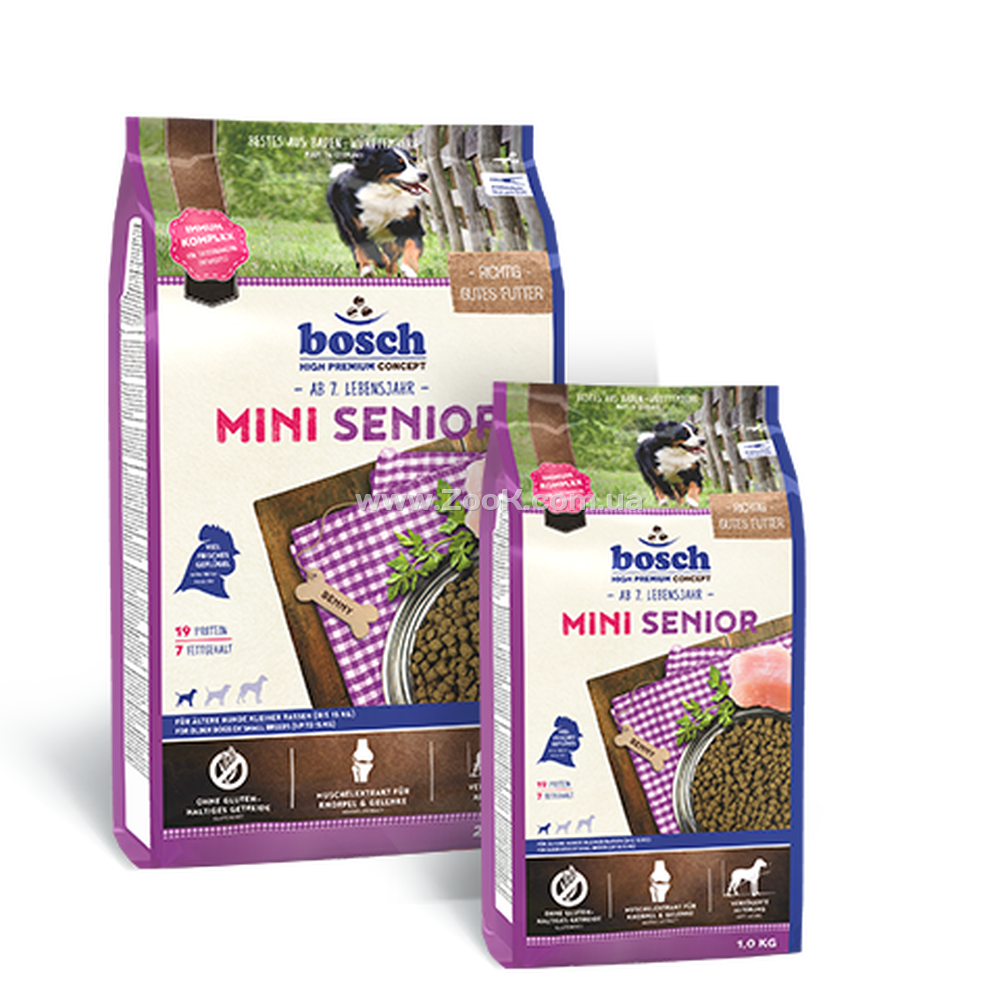 Питание стареющих собак требует сокращения количества потребляемой энергии, некоторых минеральных веществ и повышенного содержания клетчатки для обеспечения нормальной работы желудочно-кишечного тракта. Кроме того, обогащённый биологически активными антиоксидантами состав рациона SENIOR защищает клетки от преждевременного старения. Входящие в состав бета-глюканы способствует поддержанию иммунитета, а отсутствие злаков, содержащих глютен, снижает риск развития пищевой непереносимости. Высокое содержание омега-3 жирных кислот препятствует ранней деградации клеток головного мозга. Благодаря сбалансированному составу этот корм легко усваивается и имеет превосходный вкус.