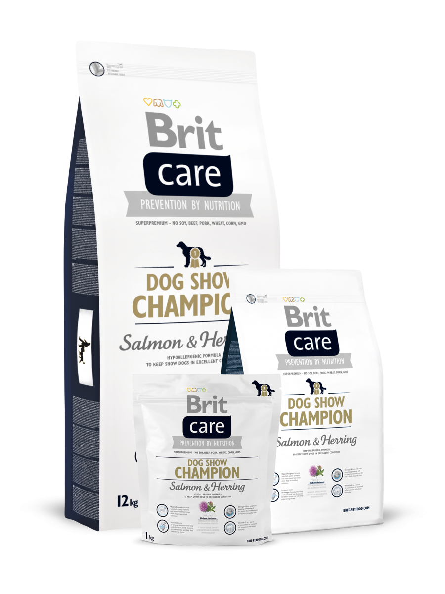 Brit Care Dog «Show Champion» гипоаллергенный корм с лососем и сельдью для поддержания шоу-собак в отличной форме