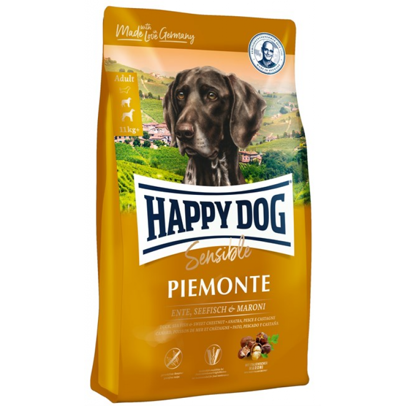 Сухой полнорационный корм Happy Dog Sensible Piemonte для собак с аллергией или пищевой непереносимостью с уткой, морской рыбой и сладким каштаном