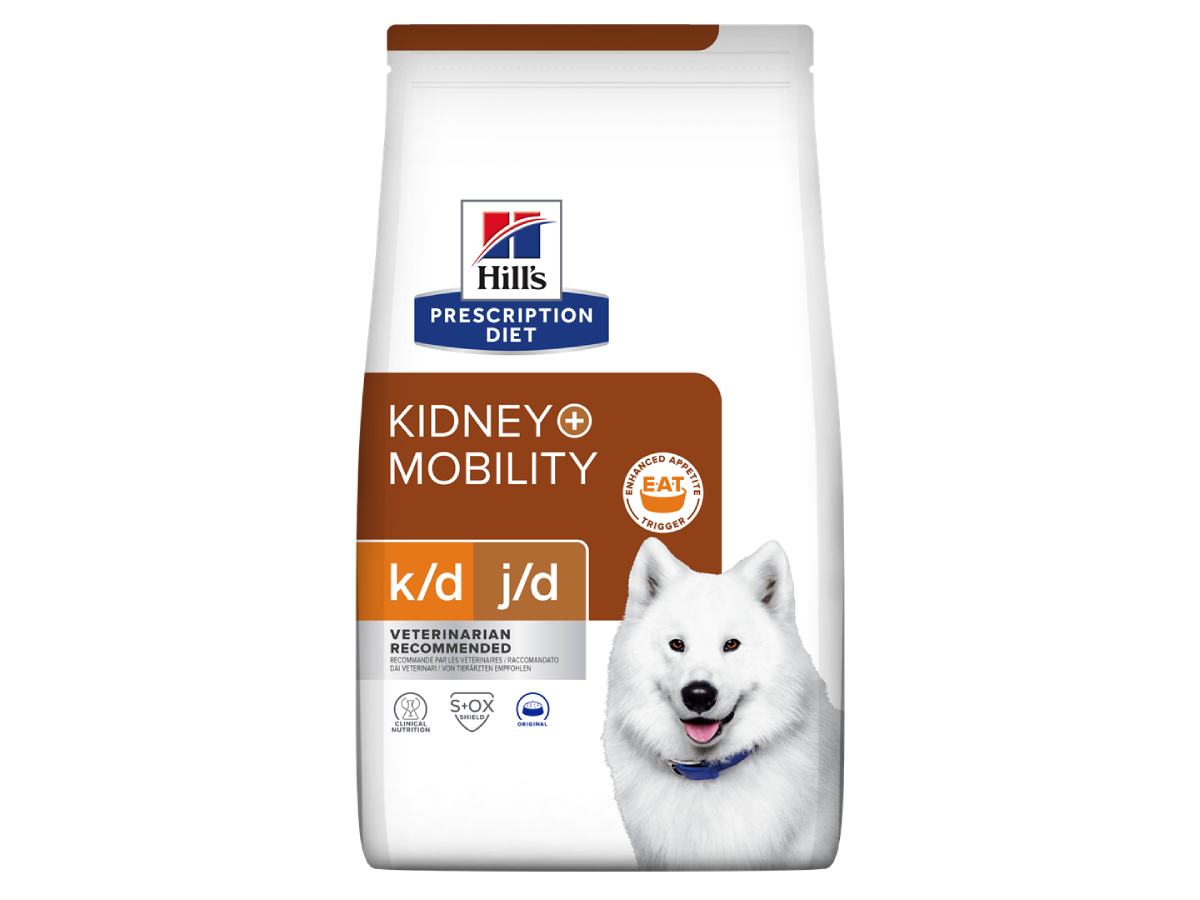 Prescription Diet™ k/d™+Mobility Canine клинически доказанная диета для поддержания подвижности и качества жизни собак с заболеваниями почек.