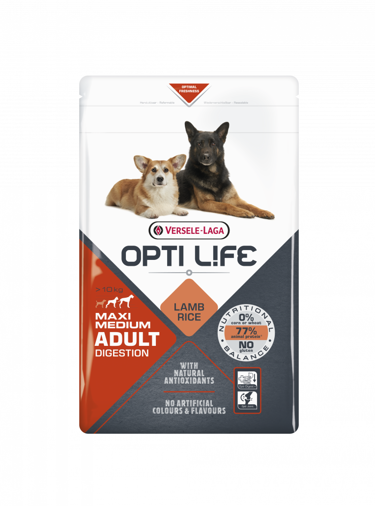 Opti Life Adult Digestion Medium & Maxi — для взрослых собак средних и крупных пород с чувствительным пищеварением на основе ягненка и риса