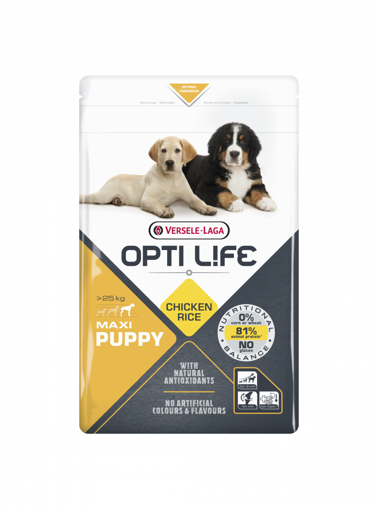 Opti Life Puppy Maxi для крупных пород (> 25 кг) — это идеально сбалансированная формула на основе курицы и риса, специально разработанная для удовлетворения всех потребностей вашего растущего щенка в питании.
