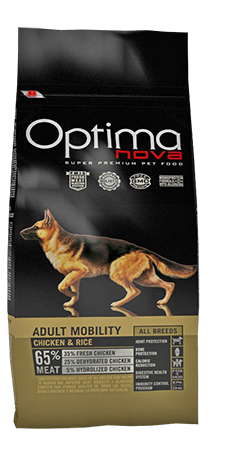 Optimanova Adult Mobility Chicken & Rice содержит омега-3 EPA и DHA жирные кислоты, которые находятся в натуральном рыбьем жире. Эти жирные кислоты легко усваиваются и помогают сохранять суставы здоровыми и снизить износ хряща. Проблемы с суставами иногда связаны с избыточным весом, поэтому корм содержит L-карнитин, который ускоряет сжигание жиров и помогает поддерживать мышцы в отличном состоянии.