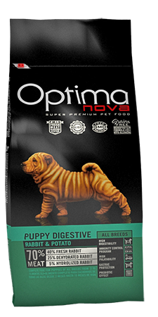 Optimanova Puppy Rabbit Digestive & Potato является единственным продуктом на рынке в этой категории который готовится со свежим мясом кролика. Этот корм легко усваивается и обладает повышенными вкусовыми качествами, с низким содержанием калорий, холестерина и жиров. Идеально подходит для щенков любых пород, особенно для собак с чувствительным желудком. Оптимальное содержание витамина А, биотина и Омега-3 помогают поддерживать кожу и шерсть в здоровом состоянии.