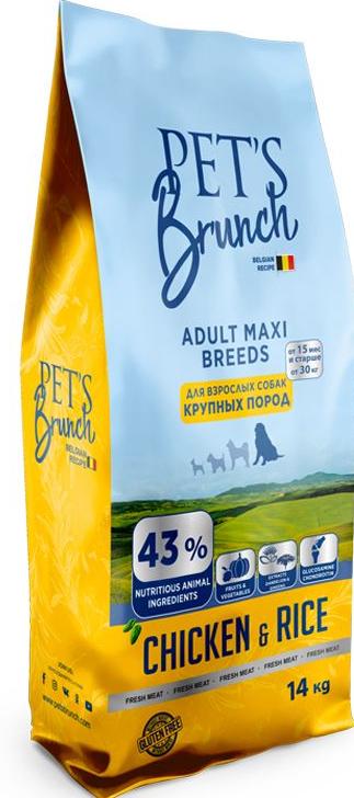 Рацион с комплексом питательных веществ для взрослых собак крупных пород, который содержит оптимальное соотношение протеинов и углеводов, а также необходимое количество аминокислот, витаминов и минералов. Комплекс хондропротекторов помогает справиться с дополнительной нагрузкой на суставы, испытываемой собакой крупной породы. Этот сбалансированный сухой корм Pet’s Brunch обеспечит крепкое здоровье и отличное физическое состояние Вашего питомца.