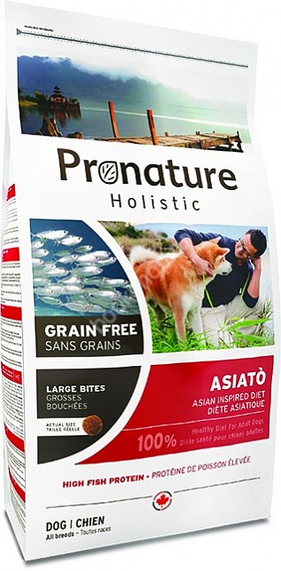 В качестве источника белка в корме Pronature Holistic Asiatò (Азиатская кухня) используется белая рыба, отличающаяся высоким содержанием Омега-3. Кроме того, в состав входит кокос, содержащий множество минеральных веществ, клетчатку и уникальный набор жирных кислот, а также бурые водоросли, способствующая правильной работе щитовидной железы и укреплению иммунитета. Pronature Holistic GF содержит овощи, полезные травы и специальные ингредиенты, с давних пор используемые в азиатской кухне, такие как имбирь, папайя, тапиока и грибы шиитаке.